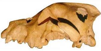 俄罗斯考古队发现的石器时代出土的最早发现的有记载的狗的头骨,这只狗生活在大约14000年前,头骨上已经表现出他的狼的祖先被人类驯化的特征了。