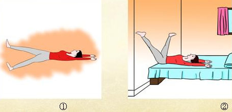 ②仰卧在床上,双脚朝上,臀部和两条腿都贴在墙上,双脚尽量分开,如同英文字母V。