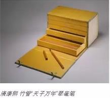 清代宫廷用笔,一般是由内务府造办处或三织造按内廷样式制作,每年苏州、杭州均有数百支湖笔进贡内廷,如大画笔、小画笔、着色笔、提笔(斗笔)、抓笔等。其笔管一般为竹管,也有玉石、玳瑁、象牙、漆、木质等,并注重装饰,有雕云龙、龙凤、蝠寿、花卉纹等者,有笔管题“天子万年”、“万国来朝”、“经天纬地”、“云汉为章”等者,内涵寓意丰富。笔毫以兔毫为主,或也有兼毫、点翠毫等,其形式有葫芦、笋尖、兰花蕊等式,以“尖、齐、圆、健”为美。内廷日常用笔所需数量可观,一年四季按季节选用不同材质的毛笔。此外,还有些属于特殊的专用笔,如每年御笔书福必用“万年枝”或“万年青”、“赐福苍生”笔等。