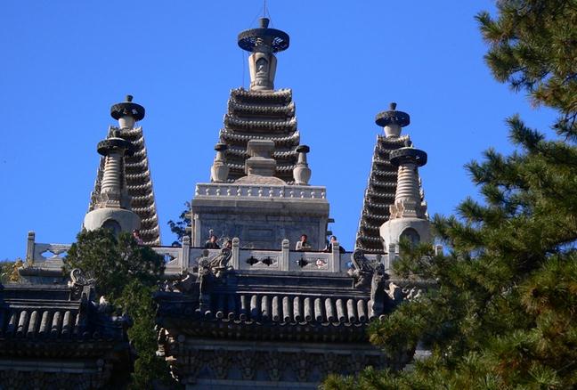 邱祖殿后有一座二层楼阁,底层是四御殿,楼上是三清阁。阁内藏明刻道藏5485卷,是研究道教的珍贵史料。