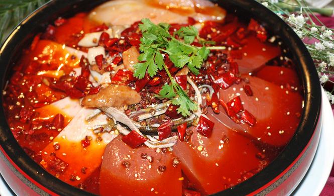 时光像嘉陵江水无声地流逝。如今,毛血旺已引领川菜大军,席卷了大江南北。麻辣诱惑对传统的毛血旺进行了改良和创新,将其汤汁红亮、麻辣鲜香、味浓味厚的特点不断发扬光大,是道值得一尝为快的巴蜀名菜。