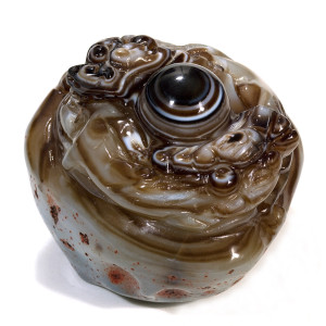 二:玛瑙纹眼石珠。也是一种火成岩天眼珠,由于成岩时的紊流及地质地理环境而造就。在各种沉积中都有存在,由于风沙水流搬运亿万年而质色各异,不乏珍品。