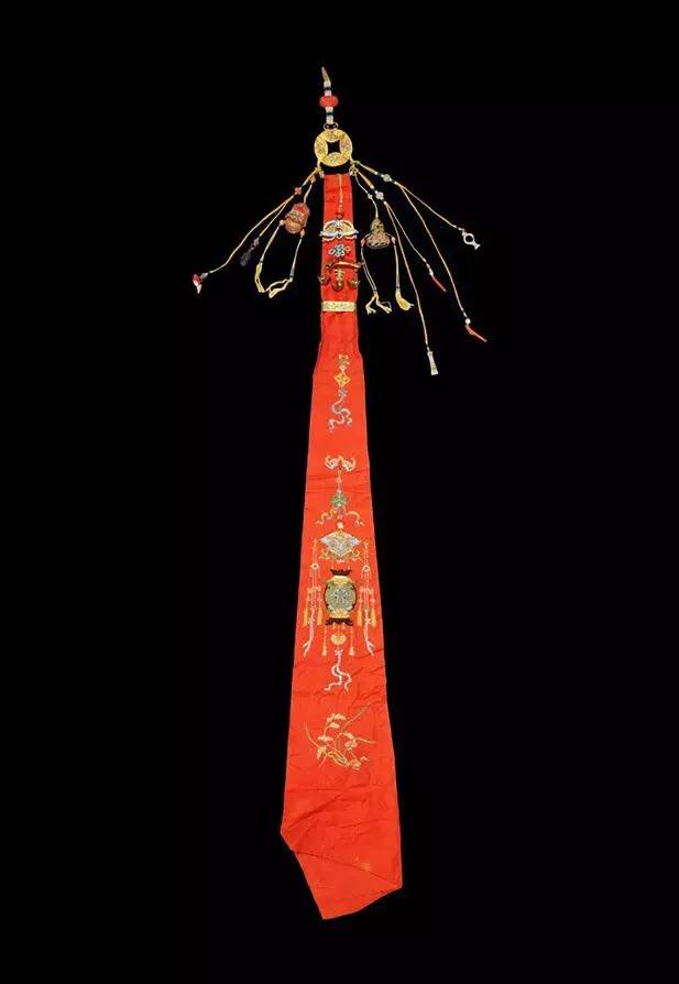 古代女子都挂采帨,以清代最为典型,一条彩色长帕,上面绣有花纹,同时还系着针、管、线、纩,挂在褂前表示针线活是妇女应尽的责任。